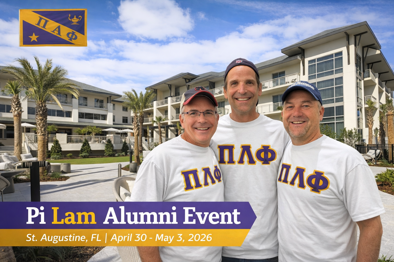 This May, we’re heading back to St. Augustine Beach for four days of easygoing fun, ocean air, and the kind of Pi Lam camaraderie that never fades. Our beachfront Embassy Suites gives us the perfect home base—poolside drinks, beach access, and plenty of space to unwind—while optional outings like golf at Marsh Creek, zip‑lining over gators at the Alligator Farm, or biking and paddling through Anastasia State Park add adventure for anyone who wants it. Evenings take us into Old Town for great food, cold drinks, and stories that get better every time they’re told. Whether you’re craving relaxation, laughs, or a little adrenaline, this trip has a lane for you—and your brothers will be there waiting.